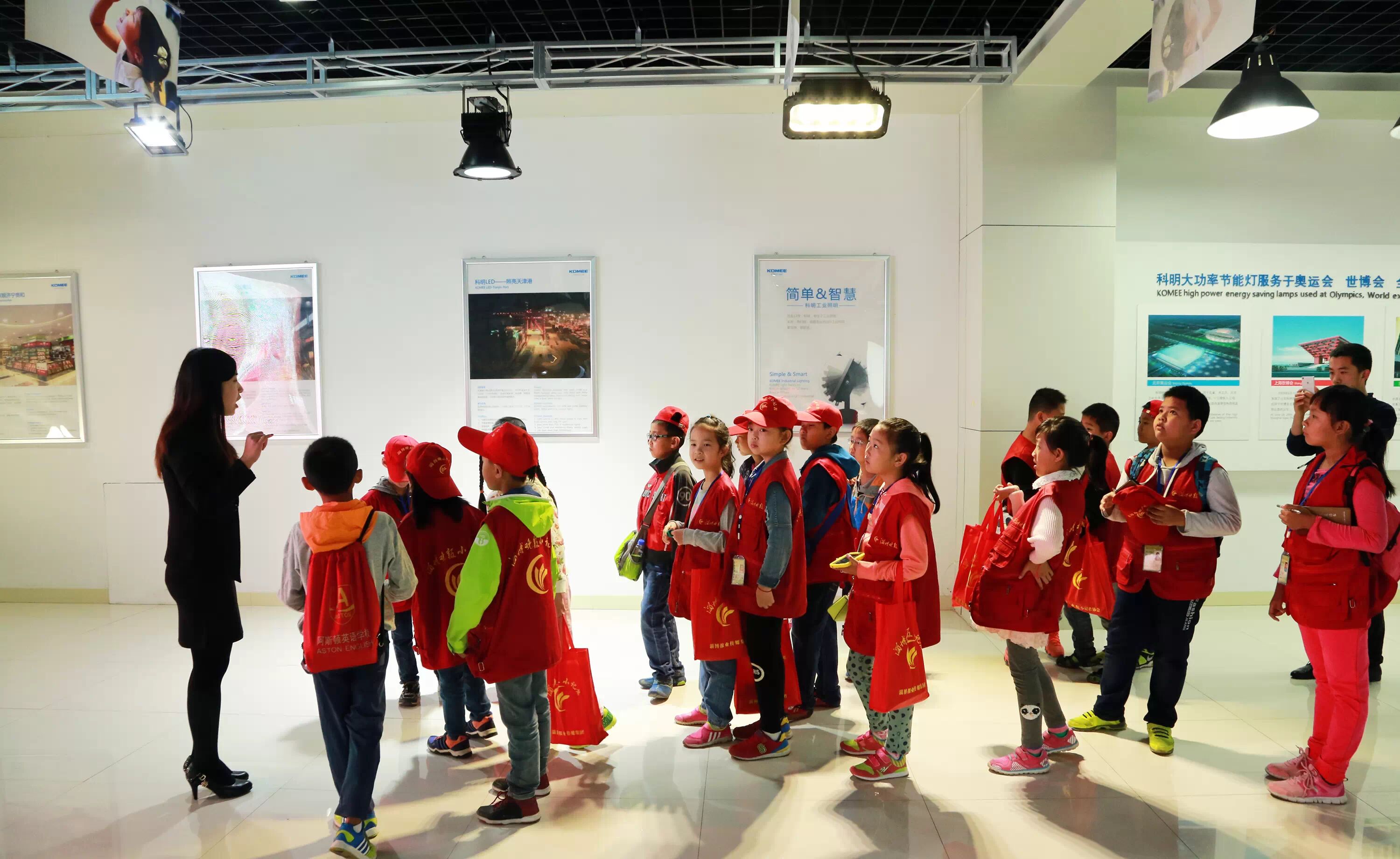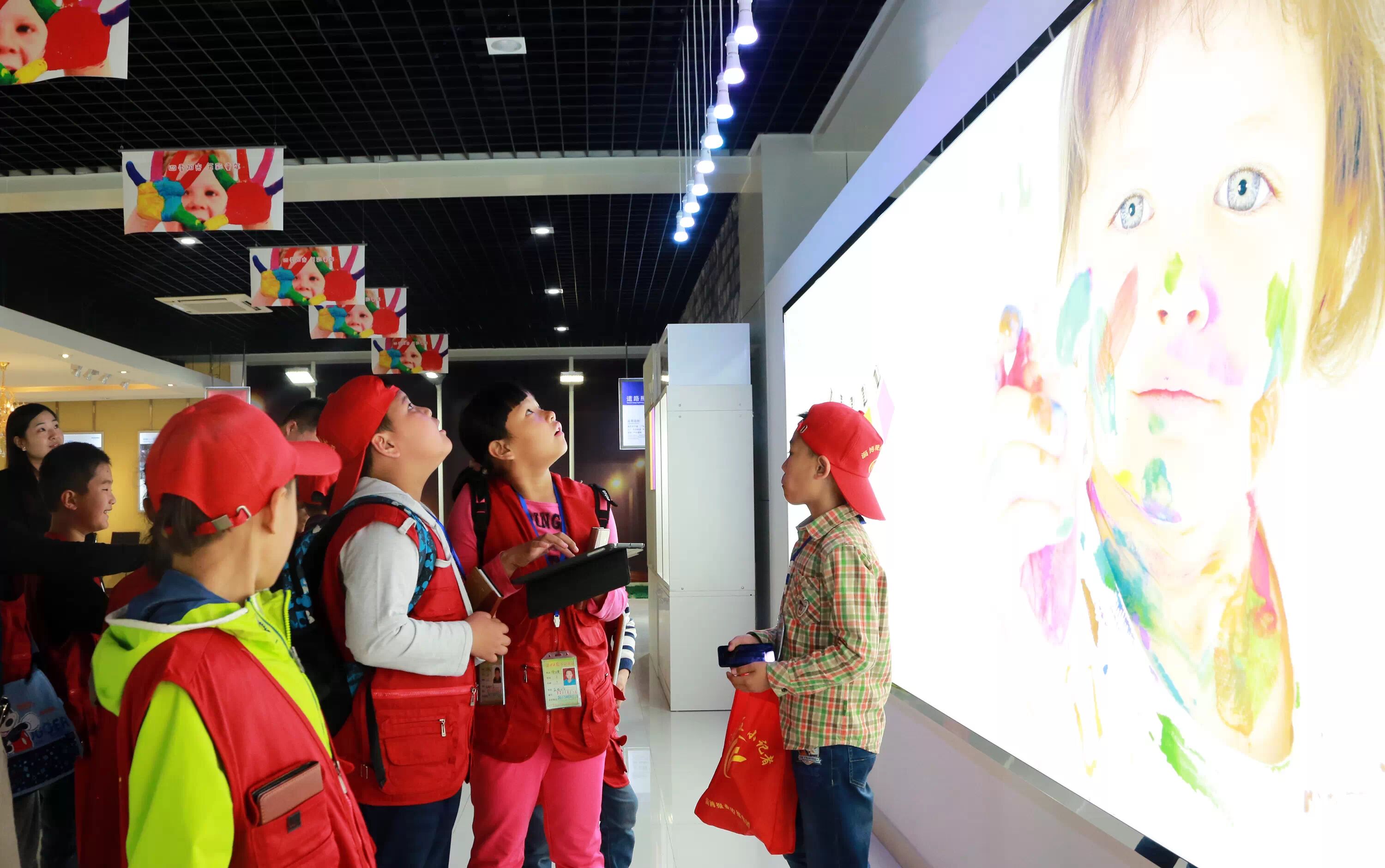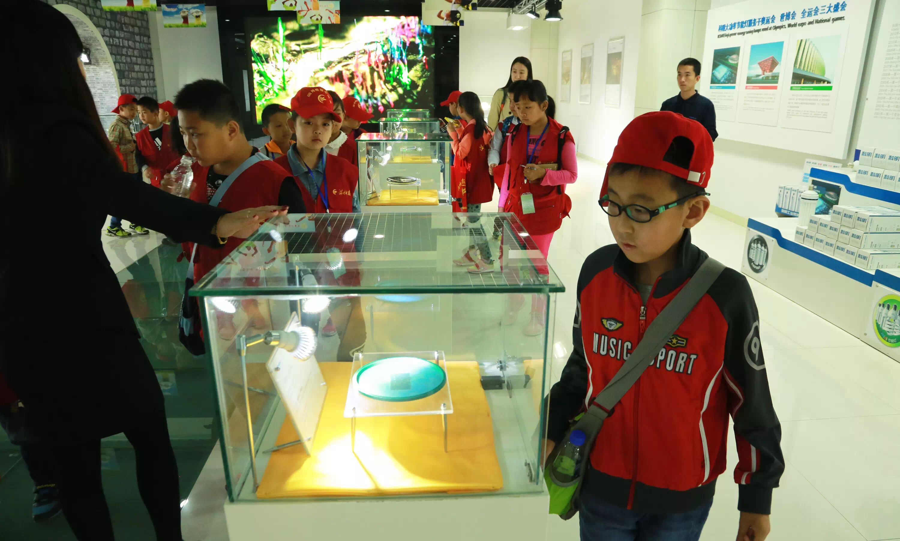 ▲科明展厅参观体验,学习照明发展史,直观了解芯片、电源、灯珠等LED灯的主要元器件,以及科明产品服务于北京奥运会、上海世博会、济南全运会等大型案例。“爱迪生发明了灯泡,科明发明了嗨泡!”一个小记者自豪的说。