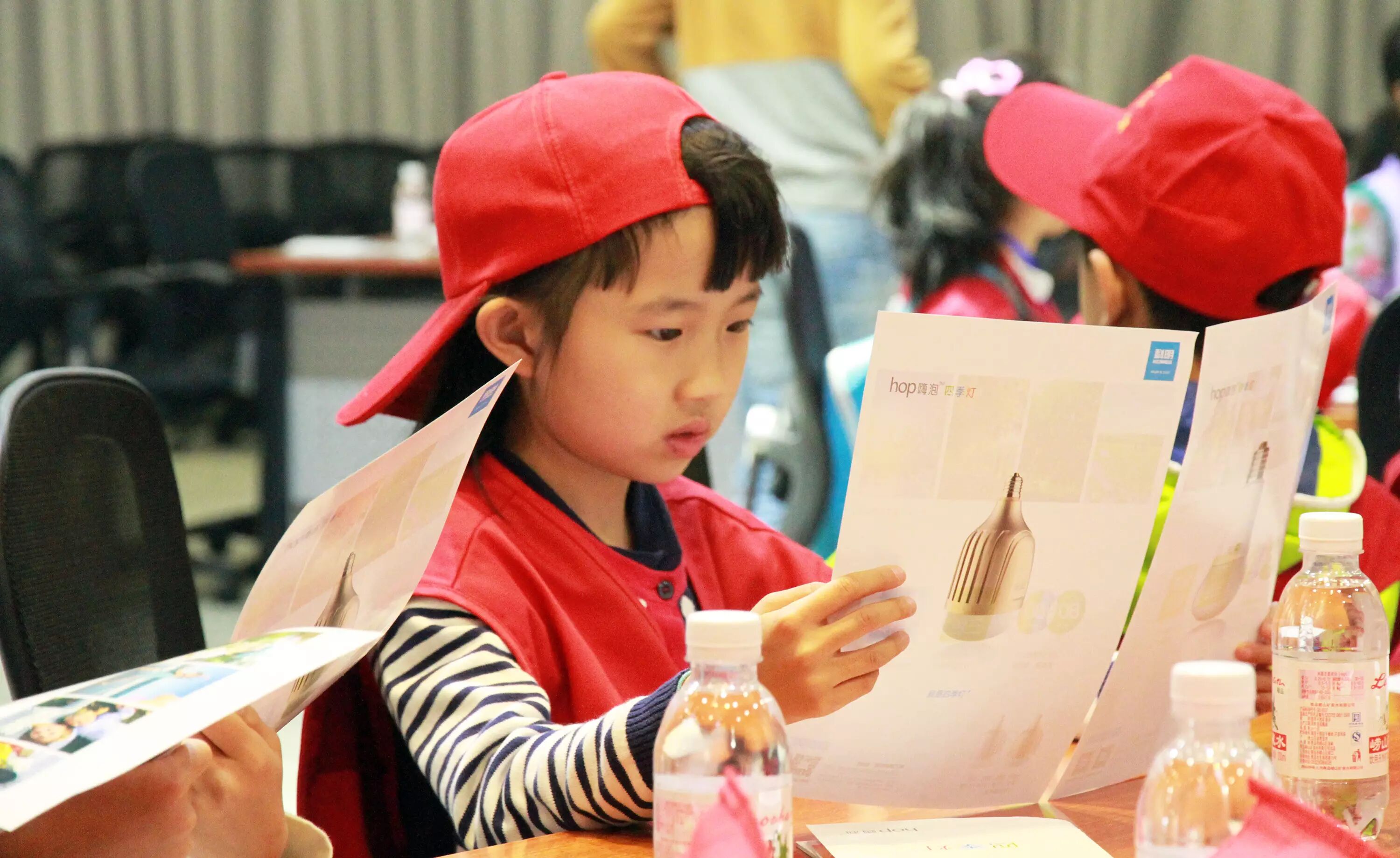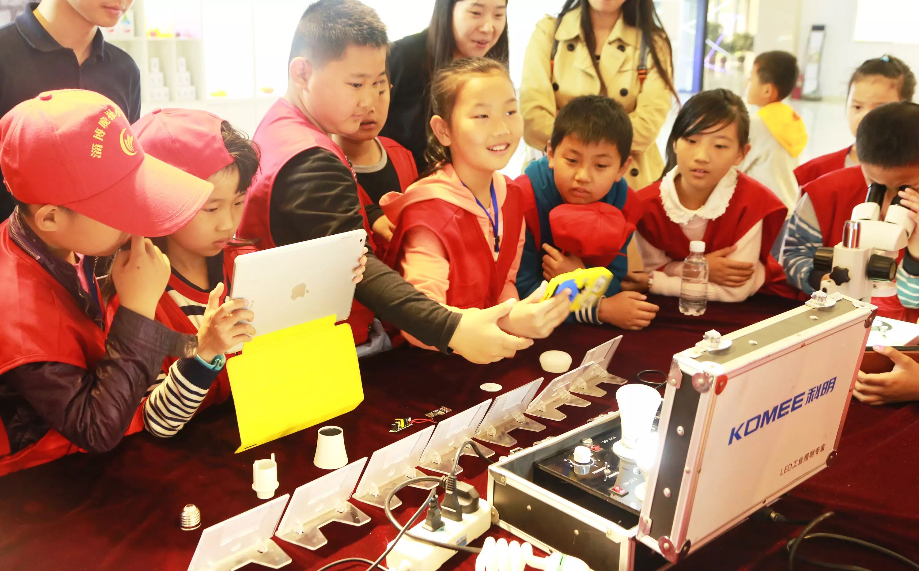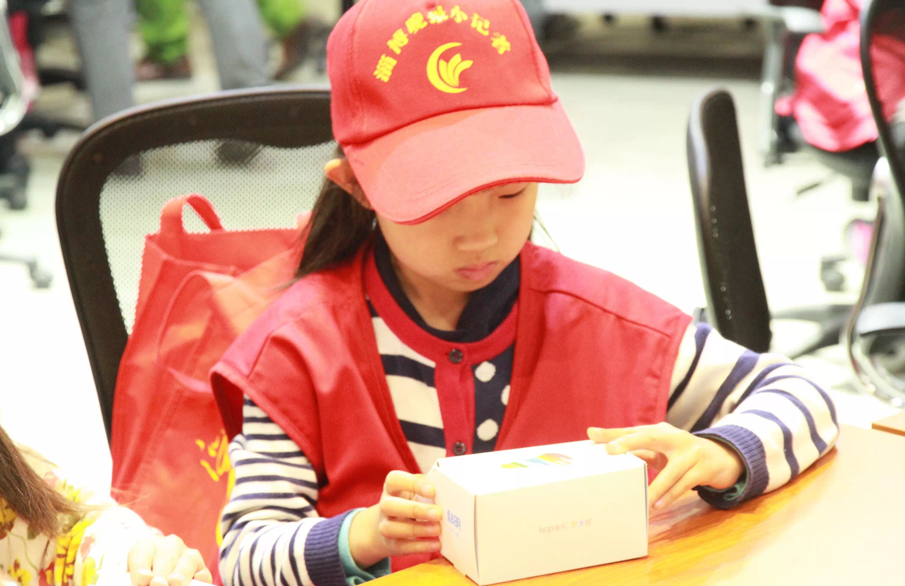 ▲科明展厅参观体验,学习照明发展史,直观了解芯片、电源、灯珠等LED灯的主要元器件,以及科明产品服务于北京奥运会、上海世博会、济南全运会等大型案例。“爱迪生发明了灯泡,科明发明了嗨泡!”一个小记者自豪的说。
