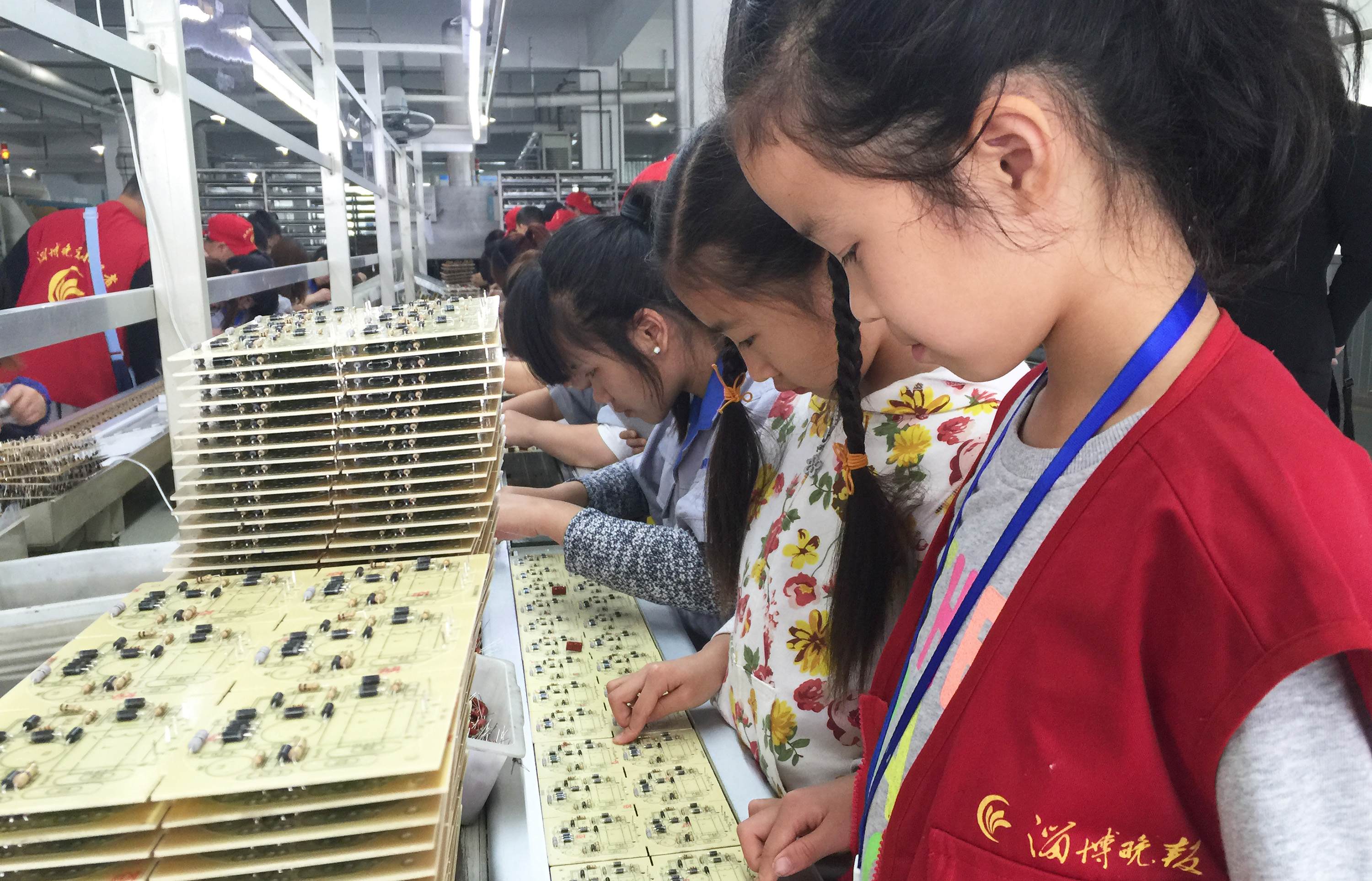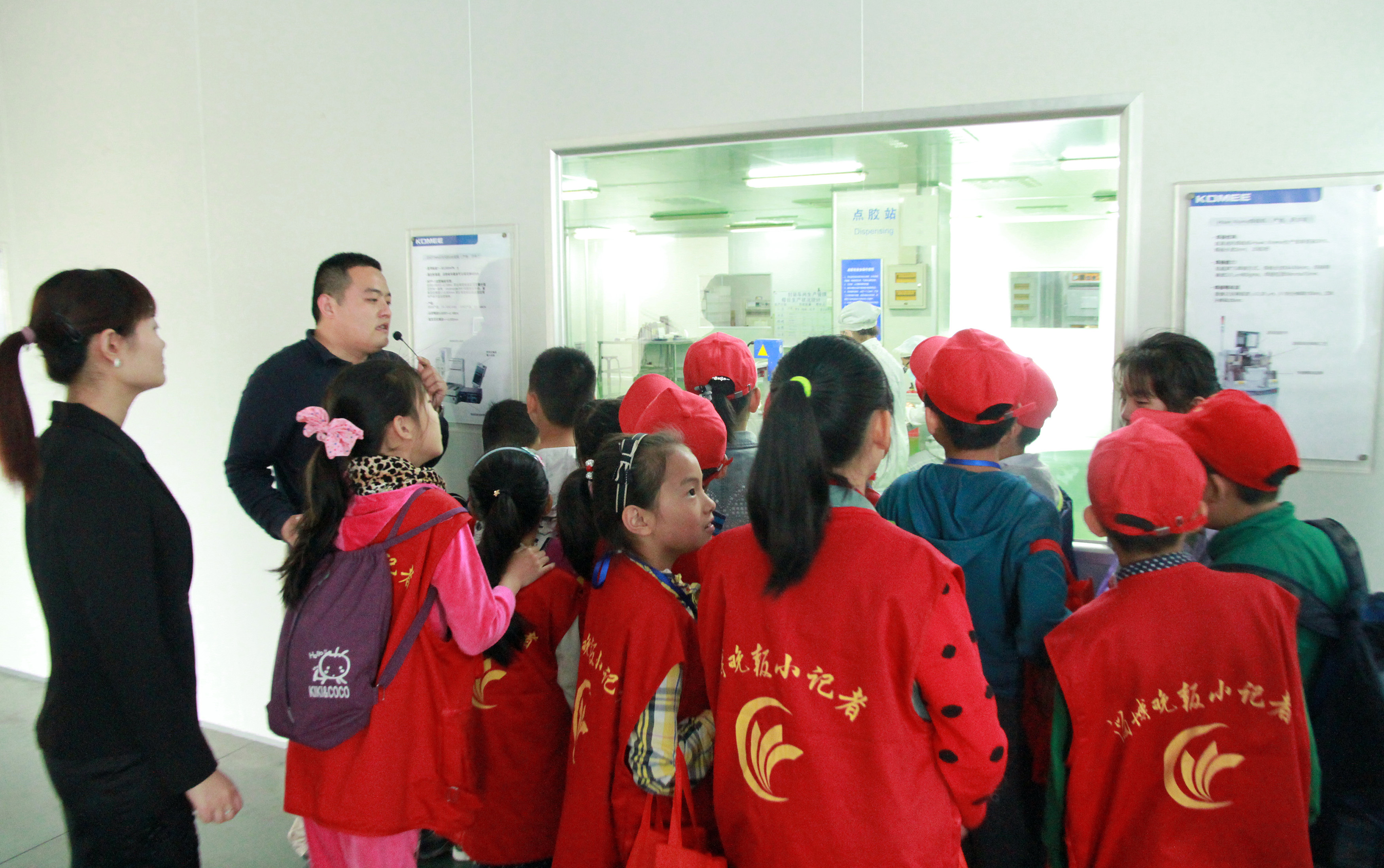 ▲小记者参观科明LED生产线、技术实验室、产品检测设备,现场体验了解LED灯是如何创造出来的。